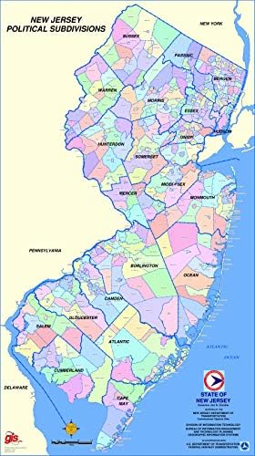 New Jersey State Wall Map Large Print Poster 24×32 Etsy