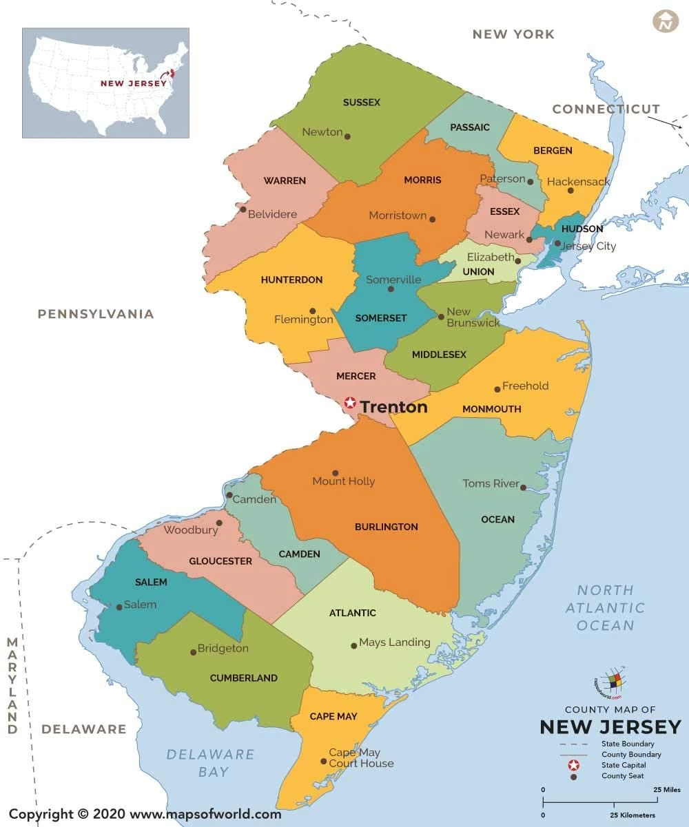 MAP OF NEW JERSEY NJ County Map New jersey state map of nj