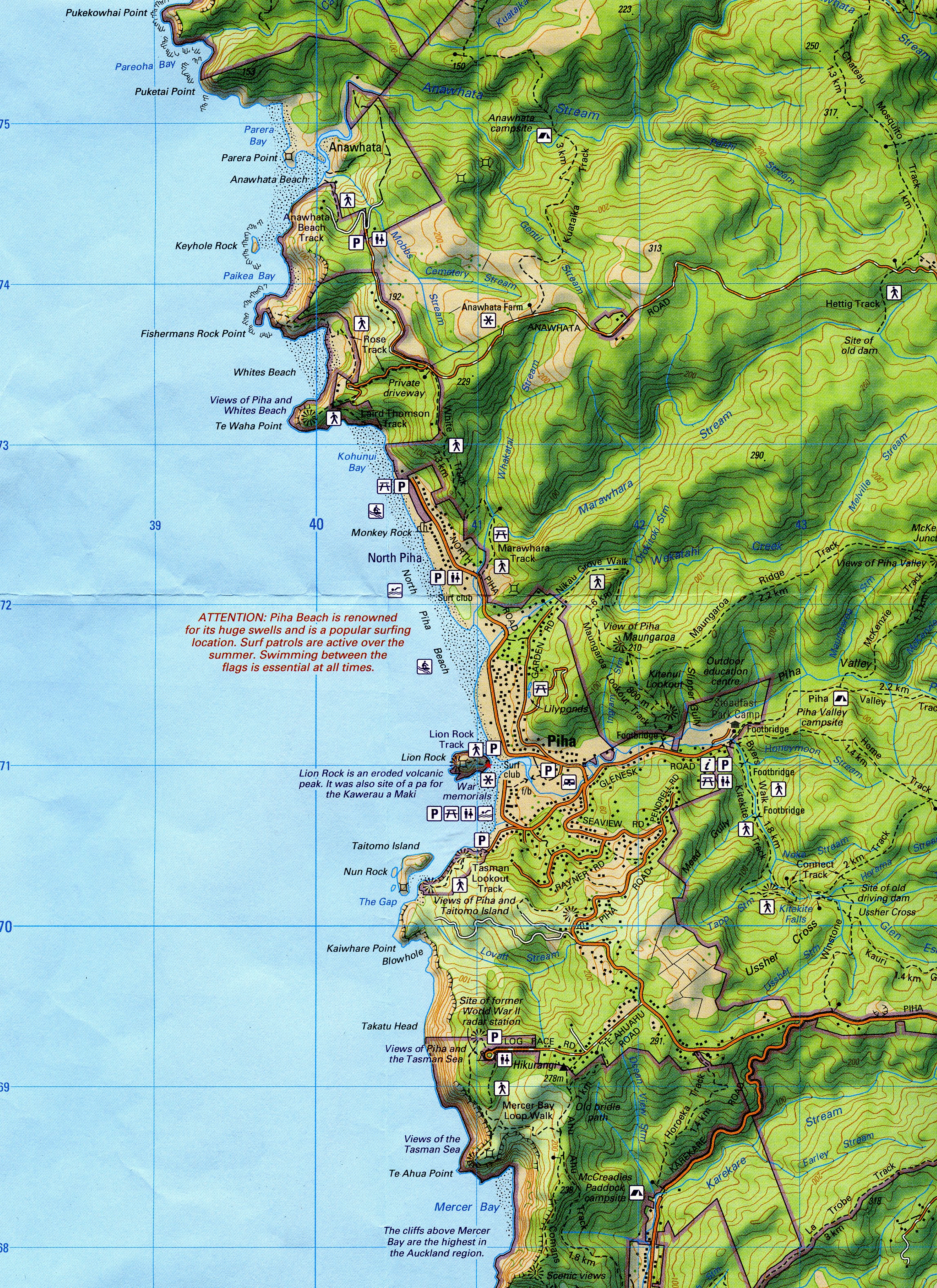 Map of Piha and coast | Piha | Piha Beach | Piha New Zealand